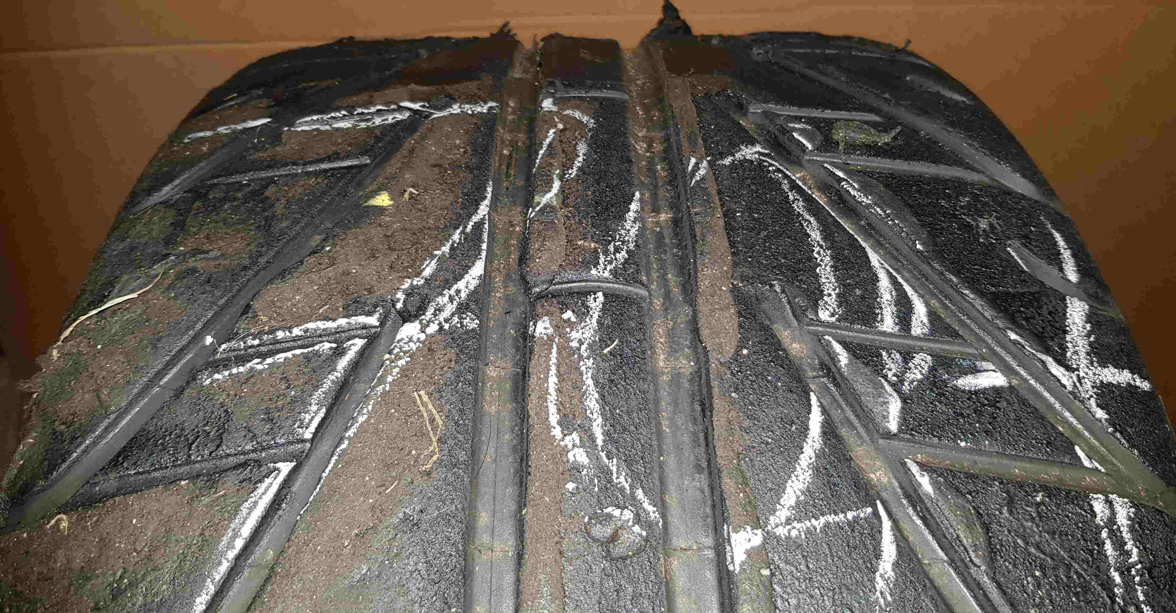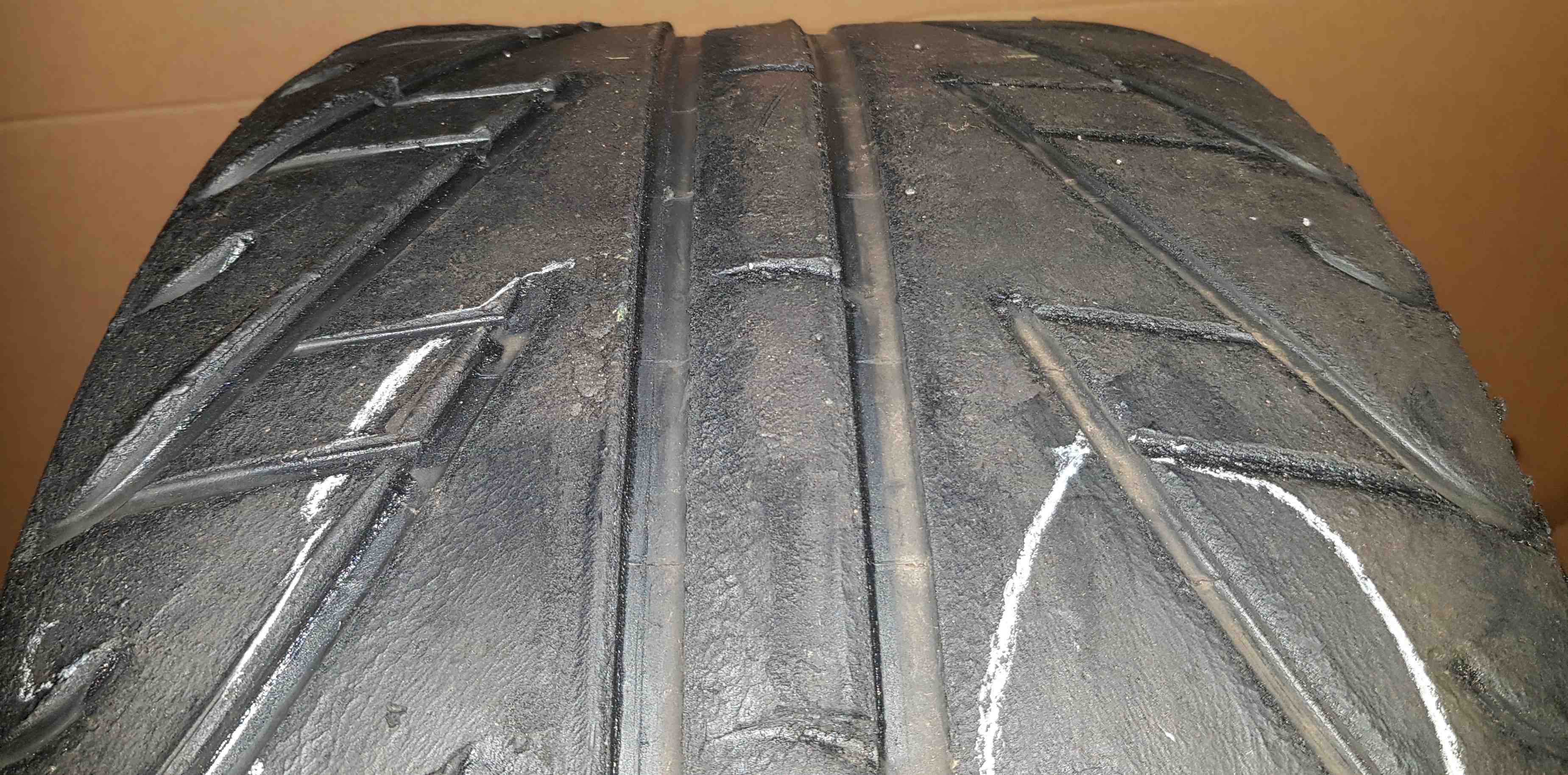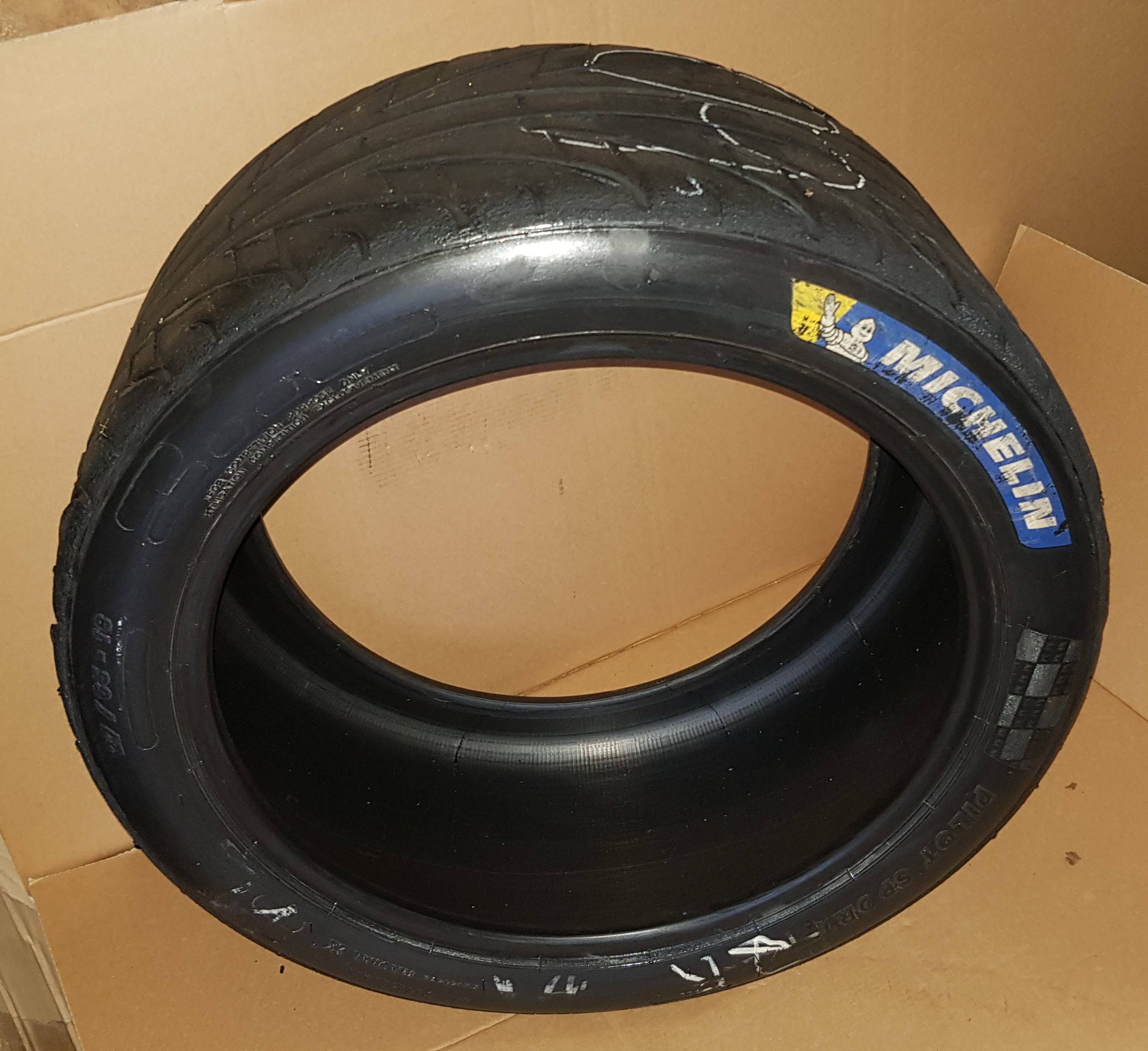 Verfügbar sind 4 stk mit Zustand 60-70+%, das heißt für einen Regenreifen ist die optimale Wasserverdrängung bei starken Nässeverhältnissen nicht mehr ganz gegeben. Jedoch ist der Reifen noch sehr gut bei feuchten, bzw feucht-trockenen Verhältnissen verwendbar. Sozusagen als InterMed. Für solche Mischverhältnisse wäre ein Neureifen sogar ungünstig, da dieser dann sehr schnell verschleißt, überfahren, also verbrennen bzw schmieren würde. Die Profiteams halten solche deutlich angefahrenen Reifen gerade für Mischverhältnisse in Reserve.